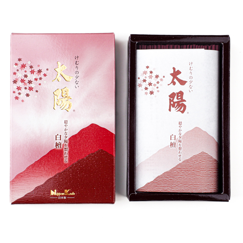 Taiyo Byakudan znamená západ slunce. Sluneční světlo je hymnou, oslavující život samotný. Ráno, odpoledne, večer... Síla slunečních paprsků se mění, ale požehnání světla zůstává. Večer zalévá obzor tajemným narůžovělým světlem a rozsvítí svět jako krajinu snů. Odpolední slunce nás hladí potváří a přináší nám do života radost a naději v zítřek. Japonské vonné tyčinky Taiyo Byakudan nám přinášejí romantickou vůni vyzrálého santalového dřeva, jemnou jako záře pozdně odpoledního slunce.