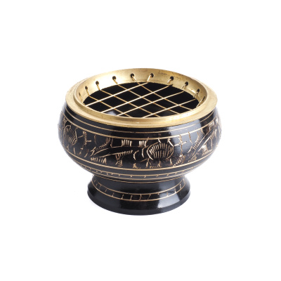 Kovová kadidelnice v černo zlaté barvě s ozdobnými ornamenty je nejen hezkou orientální dekorací, ale také praktickým společníkem pro každého milovníka vonných tyčinek, jehlánků, provázků nebo vykuřovadel.
