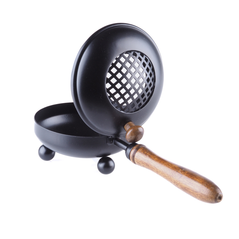 Kadidelnice s dřevěnou rukojetí jsou praktickým pomocníkem pro vykuřování kadidel a sypkých vykuřovacích směsí. Jejich rukojeti umožňují bezpečné postavení na místě nebo pohodlné přenášení. Mřížka na vrchní části kadidelnice slouží k udržení kadidla a zajišťuje jeho ochranu.