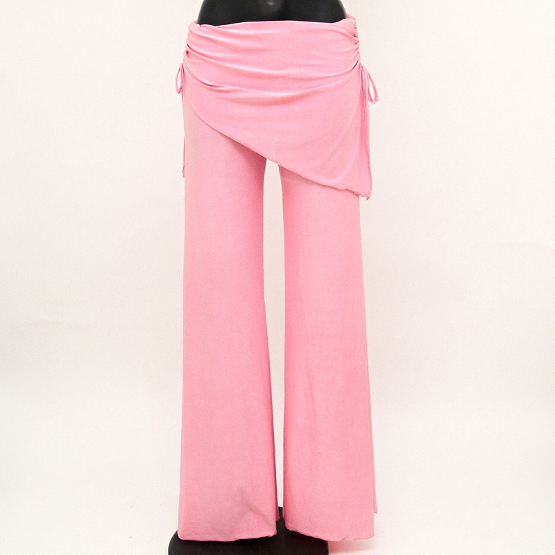 Jednobarevné kalhoty na orientální tanec Kartek, s malou sukýnkou a zvonovými nohavicemi, velikost M, barva růžová