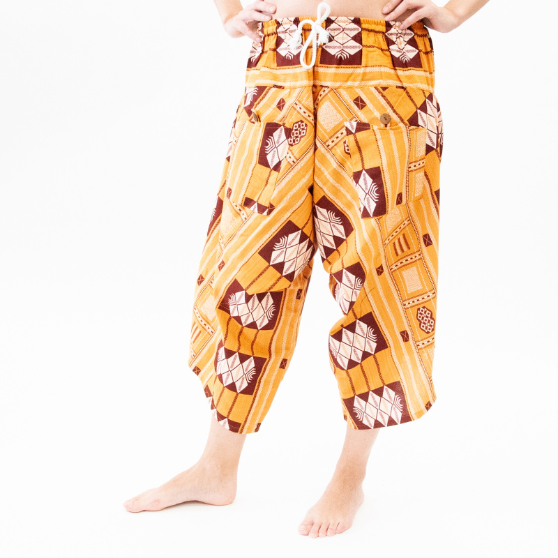 Co švadleny ubraly látky na délce, přidaly na šířce. Tříčtvrteční široké kalhoty jsou vyrobené z příjemných materiálů, mají veselé barvy, na každé straně kapsu a v pase gumu pro ještě větší komfort. Myslíme, že více slov už netřeba.