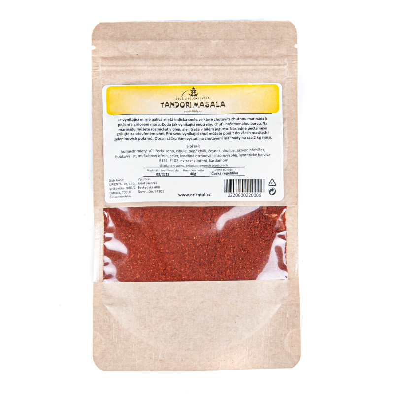 SLOŽENÍ: koriandr meletý, sůl, řecké seno, cibule, pepř, chilli, česnek, skořice, zázvor, hřebíček, bobkový list, muškátový ořech, celer, kyselina citronová, citronovy olej, syntetické barviva: E124, E102. Extrakt z koření, kardamom.