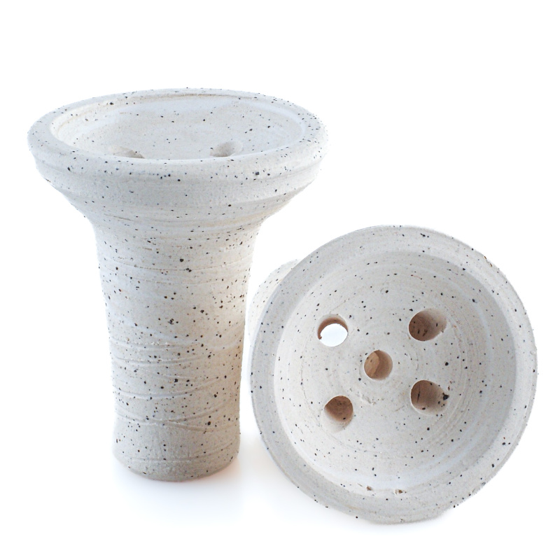 Díky ručnímu točení hmota přirozeně zhutní, což zajišťuje výslednou stabilitu materiálu, jeho stálost a minimalizuje riziko prasknutí. Při následném výpalu na 1200 °C vzniká extrémně pevná korunka s typickou mullitovou strukturou. Kombinace porcelánu a šamotu odolá vysokým teplotám i při každodenním používáním. Díky podílu šamotu vzniká poréznější povrch, který umožňuje korunce nasáknout více melasy z tabáku a rozvinout jeho sílu na maximum.