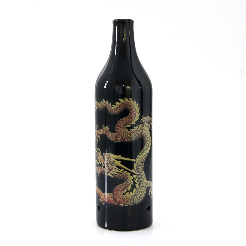Netradiční ručně vyráběná kouřící láhev nahrazuje běžné stojánky na vonné tyčinky. Tyčinka se zavěsí bambusovou štěpinou do lahve pomocí přiloženého kroužku (viz. foto). Popel z tyčinky tedy padá dovnitř láhve.