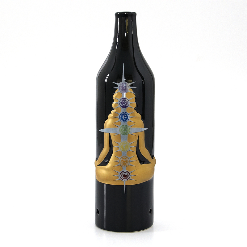 Originální, netradiční láhev na vonné tyčinky s motivem sedmi čaker, barva zlatá