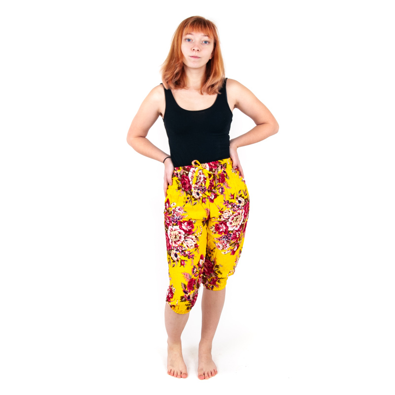 Pohodlné dámské kraťasy Yoga Květiny ve žluté barvě