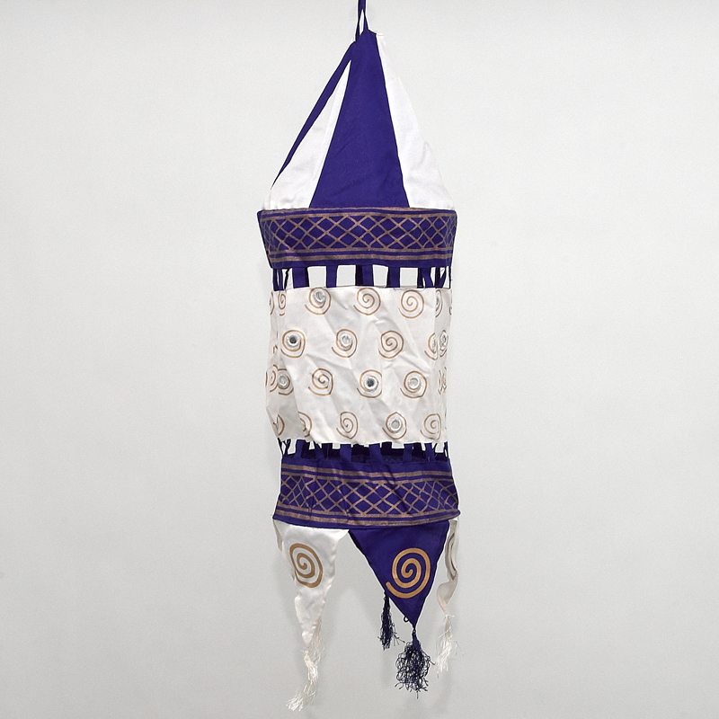 Překrásné textilní lampiony jsou zdobeny spirálami a zrdcátky.