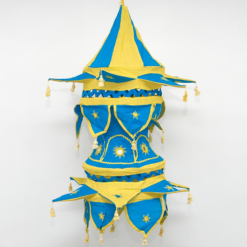 Úžasné indické stínidlo je zdobeno výšivkami a zrdcátky, které při sebemenším pohybu lampionu naplňují místnost fascinující hrou odlesků světel.