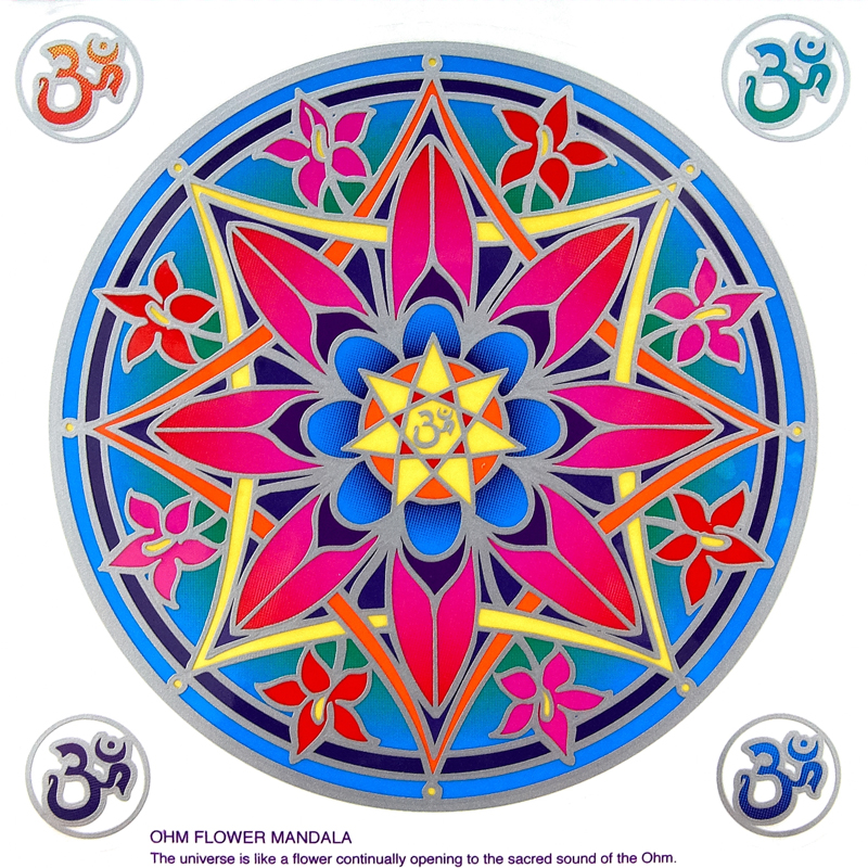 Úžasně barevná sluneční mandala se symbolem Ohm a květinami, mandala Sunseal Ohm Flower Mandala