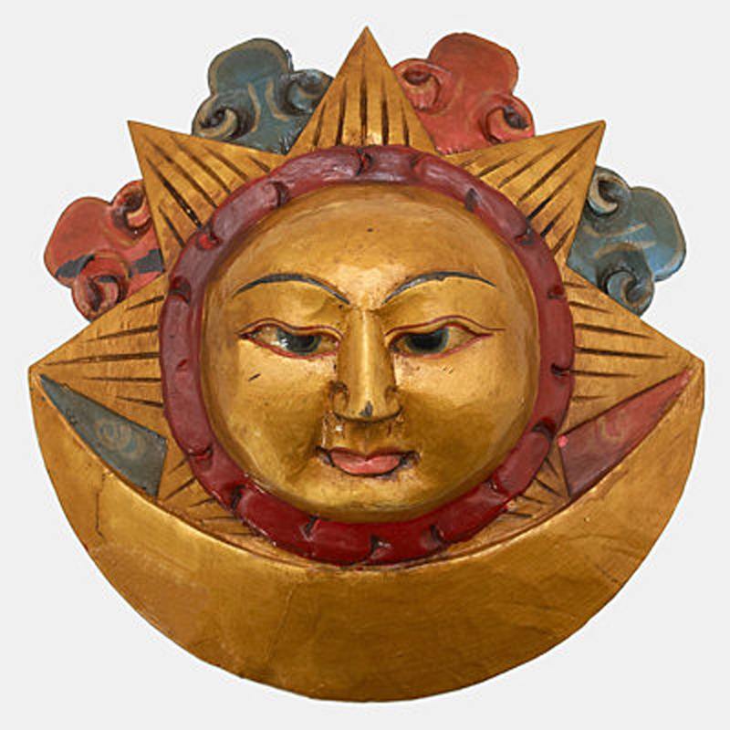 Dřevěné masky slunce s měsícem, pro pověšení na zeď, různé typy, velikost 20 cm