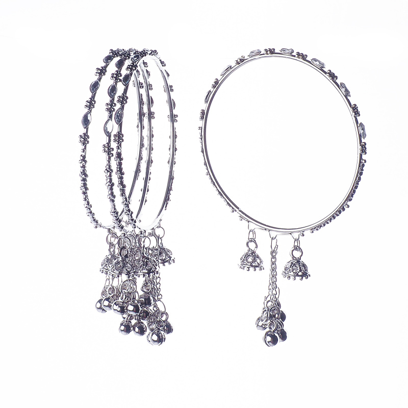 Čtyři jemné náramky dodávají dynamický vzhled. Dají se nosit i jednotlivě. Náramky jsou obohaceny o detailně propracované kovové doplňky, které zahrnují různé ornamenty, rolničky a zdobené zvonečky. Tyto prvky nejen vizuálně ozvláštňují náramek, ale také vydávají jemný zvuk při pohybu, což přidává k celkovému zážitku.