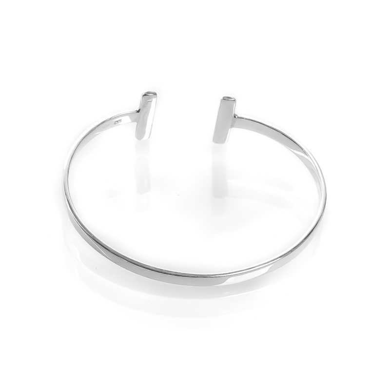 Jednoduchý stříbrný náramek zakončený dvěma výraznými T.