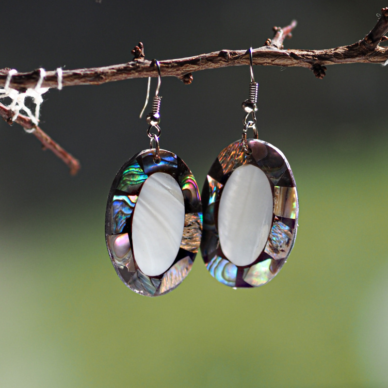 Perleťové náušnice oválného tvaru zdůrazní vaši jedinečnost, originalitu a smysl pro detail. Jemná ruční práce snoubící se s přírodním materiálem a půvabným zdobením vás učiní nepřehlédnutelnou.