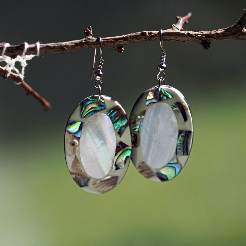 Perleťové náušnice oválného tvaru zdůrazní vaši jedinečnost, originalitu a smysl pro detail. Jemná ruční práce snoubící se s přírodním materiálem a půvabným zdobením vás učiní nepřehlédnutelnou.