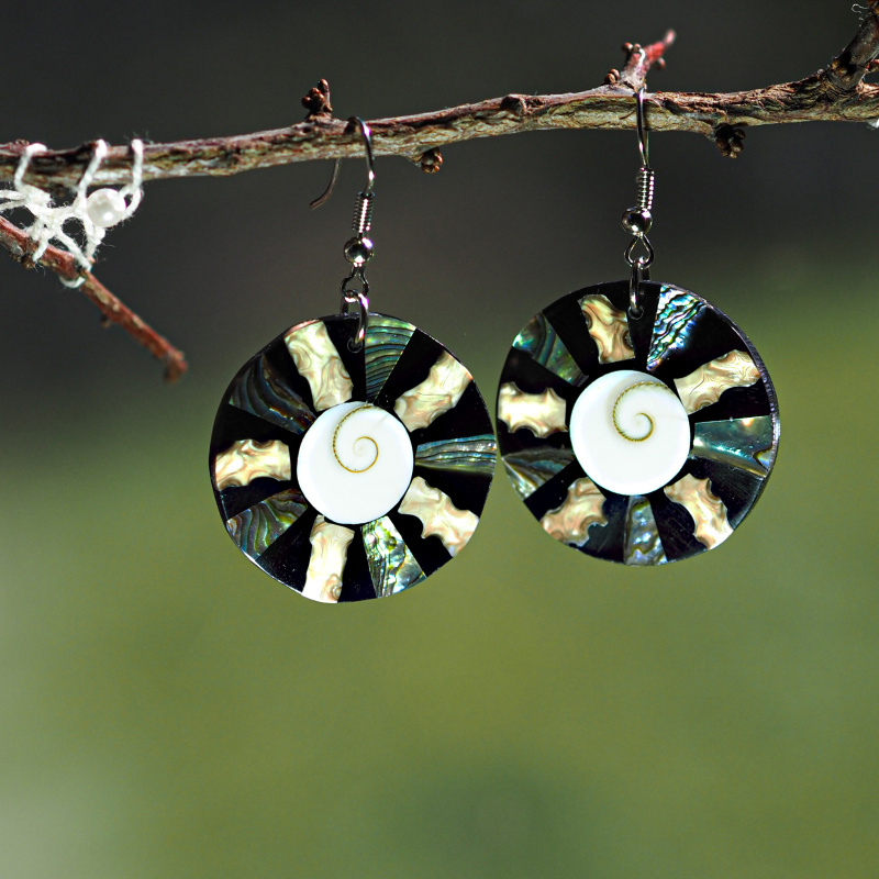 Perleťové náušnice kulatého tvaru s jemnou spirálou lastury zdůrazní vaši jedinečnost, originalitu a smysl pro detail. Jemná ruční práce snoubící se s přírodním materiálem a půvabným zdobením vás učiní nepřehlédnutelnou.