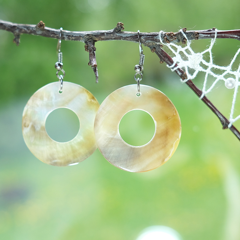 Perleťové náušnice kulatého tvaru podtrhnou vaši jedinečnost i originalitu. Jemná ruční práce snoubící se s přírodním materiálem vás učiní nepřehlédnutelnou.