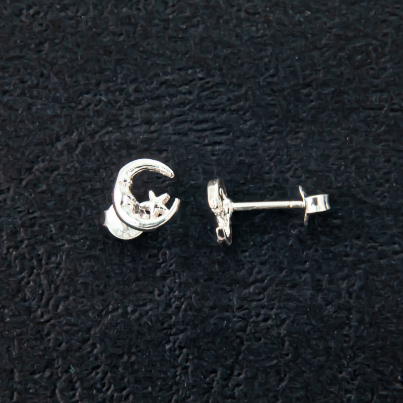 Drobré stříbrné náušnice ve tvaru měsíce a hvězdy.