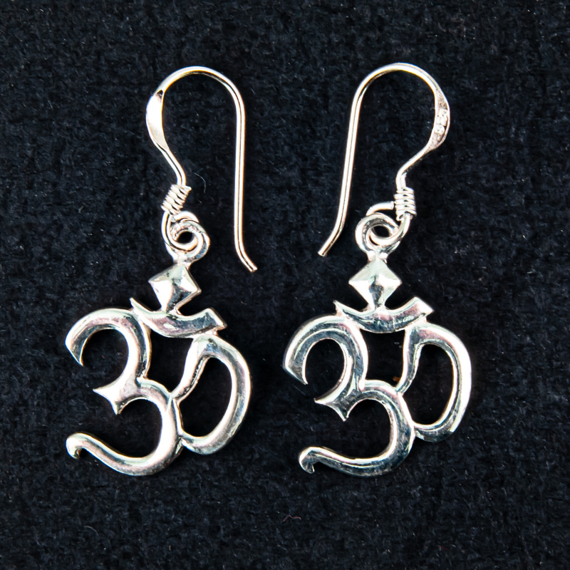 Elegantní stříbrné náušnice ve tvaru symbolu Óm.
