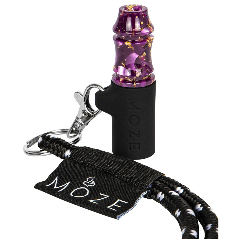 Lesklý fialový náustek je zdobený zlatě třpytícími se prvky, skoro nic neváží, má ideální tvar i velikost a nosit ho můžete na krku, v kapse nebo jakémkoliv zavazadle. Na konci náustku nechybí silikonový adaptér s povrchovou úpravou Soft Touch, která je velmi příjemná na dotek. Díky silikonové koncovce můžete svůj osobní náustek přímo navléct na jakýkoliv typ náustku k hadicím.