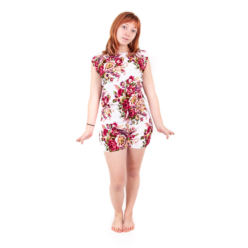 Dámský overal s veselým motivem Květiny 01 v bílé barvě