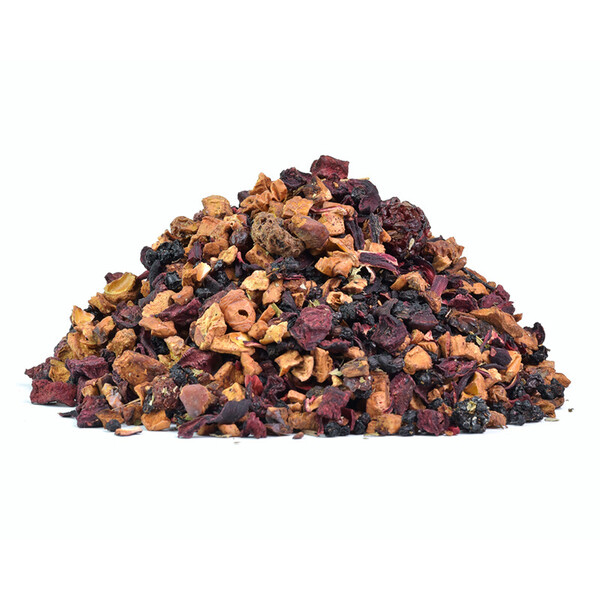 Složení: květy ibišku, červený rybíz, rozinka, černý bez, kousky jablka, jahod, ostružiny, červená řepa, černá jeřabina, listy ostružiny. Díky svému složení jej mohou pít i děti.
