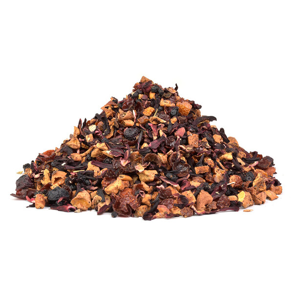 Složení: šípek, květy ibišku, kousky jablka, bezinky, borůvky, listy jahodníku a rybízu. Kvalitní ovocná směs bez přídavku barviv či konzervantů.
