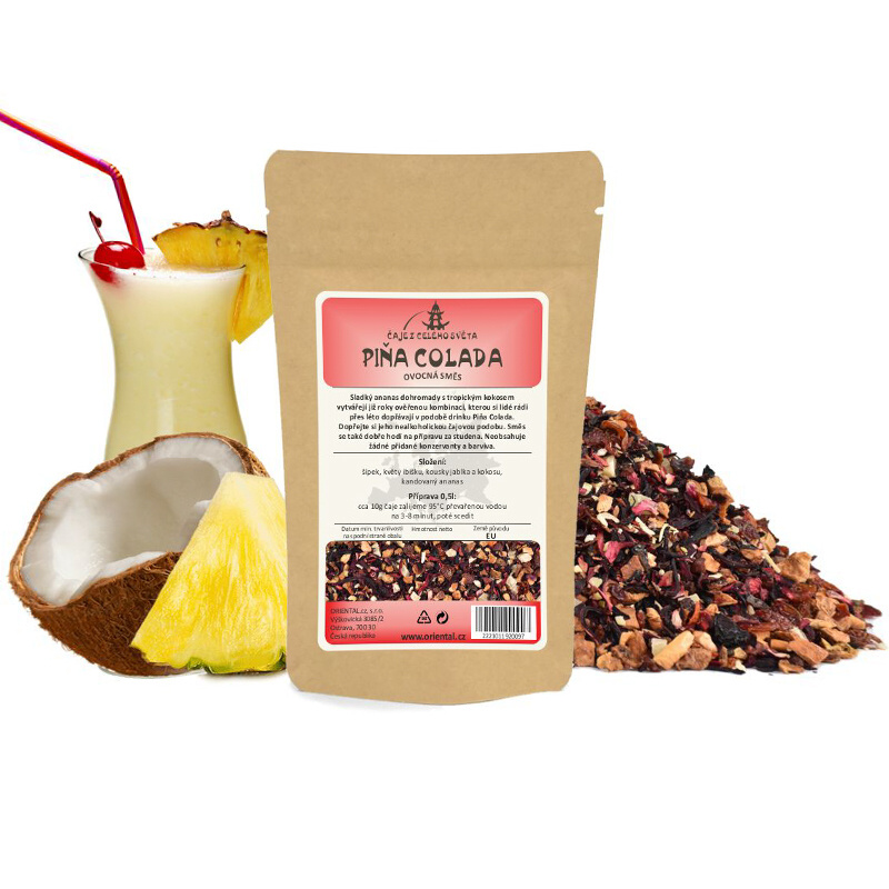 Sladký ananas dohromady s tropickým kokosem vytvářejí již roky ověřenou kombinaci, kterou si lidé rádi přes léto dopřávají v podobě drinku Piňa Colada. Dopřejte si jeho nealkoholickou čajovou podobu. Směs se také dobře hodí na přípravu za studena na způsob Ice Tea. Neobsahuje žádné přidané konzervanty a barviva.