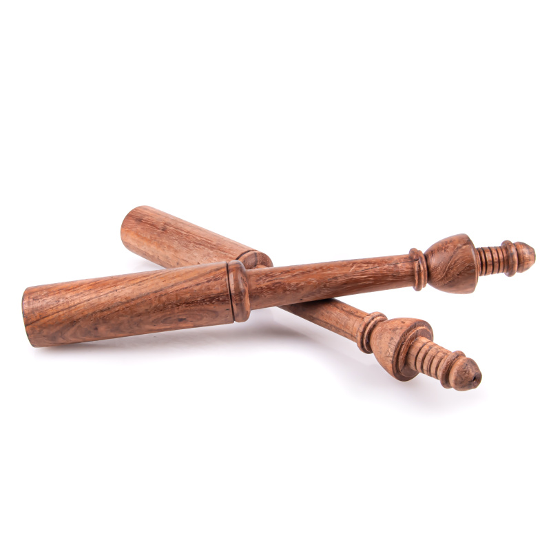 Vyřezávaná dřevěná palička z měkkého dřeva se zdobenou rukojetí je určená ke hře na tibetské mísy.