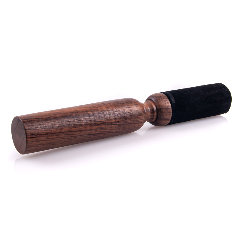Funkční část paličky je potažena černou kůží. Rozměry paličky jsou ideální pro hru na střední a větší mísy.