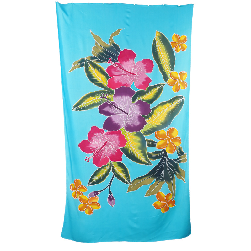 Popis produktu Pareo Sarong Bali Flowers 02 světle modrá 200 x 118 cm