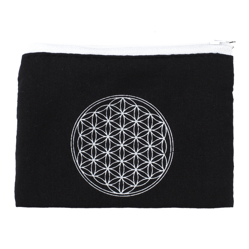 Kvalitní balijská peněženka je ušita z dvouvrstvé, na dotek velmi příjemné měkké bavlny v tajuplné černé barvě a uzavíratelná na klasický zip. Vnitřní prostor není členěn, lze do ní uložit ledacos – od mincí a bankovek, přes doklady či vizitky, až po osobní talismany a jiné drobnosti denní potřeby. Peněženka je zdobena půvabným motivem Květu života.