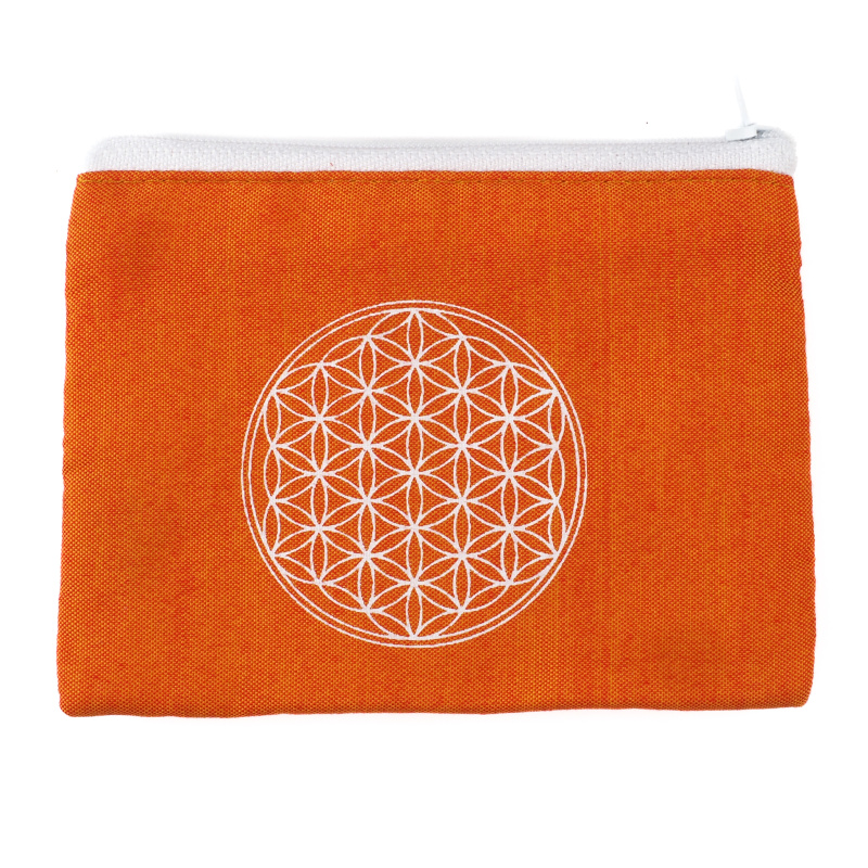 Kvalitní balijská peněženka je ušita z dvouvrstvé, na dotek velmi příjemné měkké bavlny v energické, povzbuzující oranžové barvě a uzavíratelná na klasický zip. Vnitřní prostor není členěn, lze do ní uložit ledacos – od mincí a bankovek, přes doklady či vizitky, až po osobní talismany a jiné drobnosti denní potřeby. Peněženka je zdobena půvabným motivem Květu života.