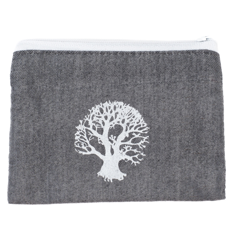 Kvalitní balijská peněženka je ušita z dvouvrstvé, na dotek velmi příjemné měkké bavlny v elegantní, jemné šedé barvě a uzavíratelná na klasický zip. Vnitřní prostor není členěn, lze do ní uložit ledacos – od mincí a bankovek, přes doklady či vizitky, až po osobní talismany a jiné drobnosti denní potřeby. Peněženka je zdobena půvabným motivem Stromu života.