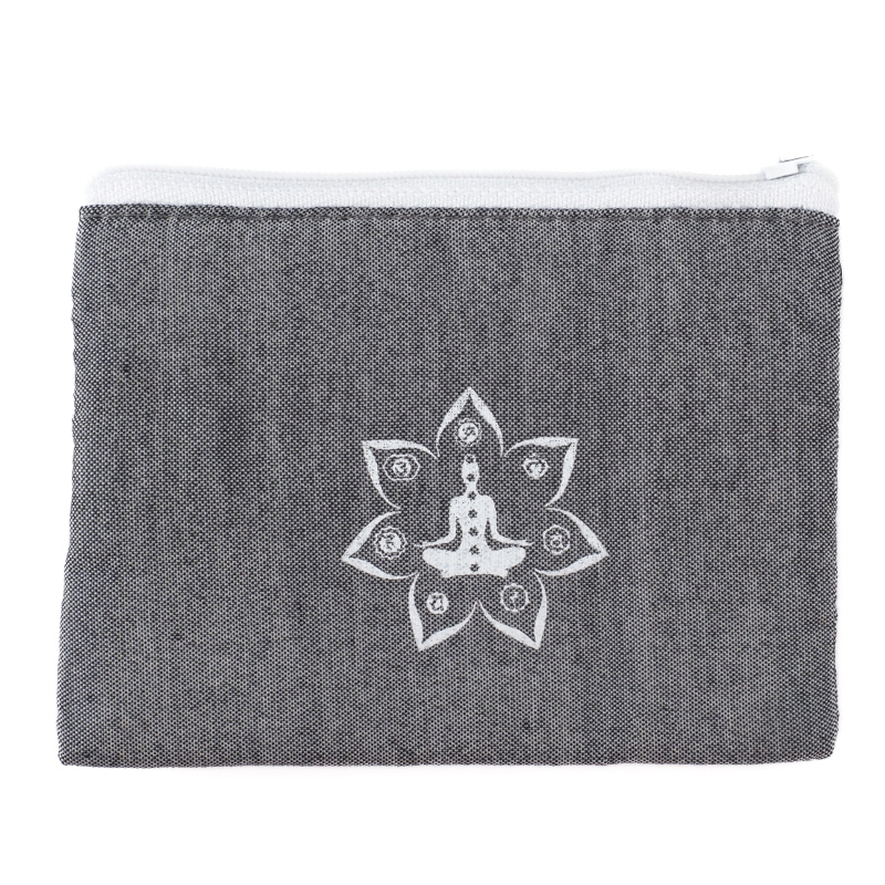 Kvalitní balijská peněženka je ušita z dvouvrstvé, na dotek velmi příjemné měkké bavlny v elegantní, jemné šedé barvě a uzavíratelná na klasický zip. Vnitřní prostor není členěn, lze do ní uložit ledacos – od mincí a bankovek, přes doklady či vizitky, až po osobní talismany a jiné drobnosti denní potřeby. Peněženka je zdobena symbolem Jógy.