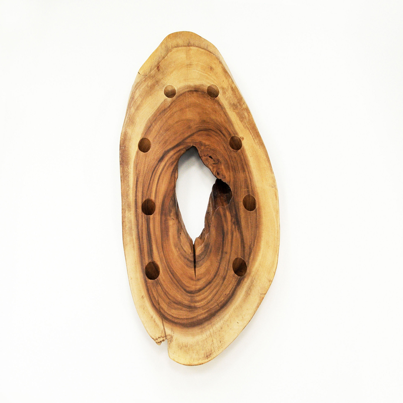 Designový nástěnný držák na 8 lahví vína. Police je ručně vyrobená z exotického dřeva suar a ošetřená přírodním olejem. Nábytek vyrábějí v Thajsku místní rodinná řezbářství, která mají mnohaletou historii. Produkty jsou zpracovány pro exportní účely, tudíž splňují přísná kritéria kvality po stránkách funkční, technické i designové.