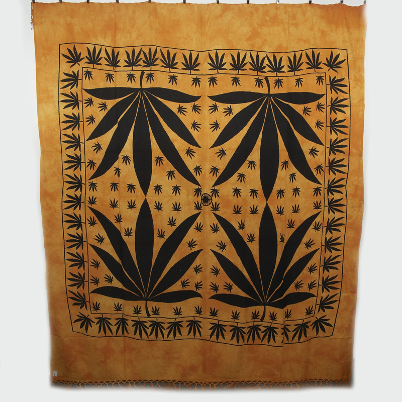 Přehoz na postel bavlněný double, motiv Indica, barva žlutá
