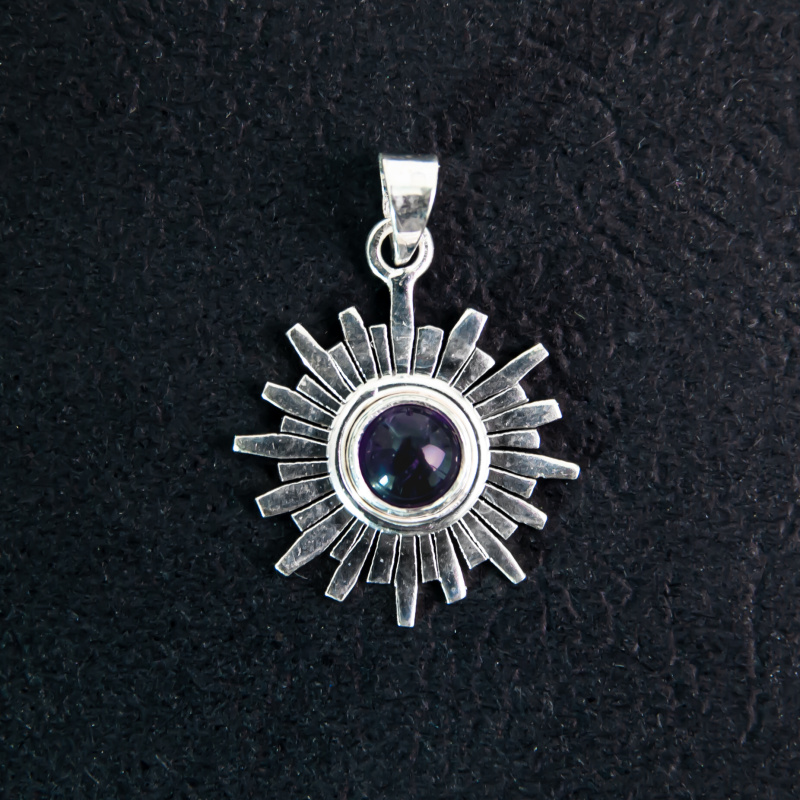 Nádherný stříbrný šperk, symbolizující korunní čakru Sahasrara, je vyroben ze stříbra 925 a ametystu.
