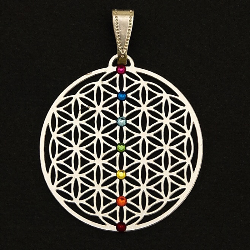 Popis produktu Přívěsek Květ života s čakrovými krystaly