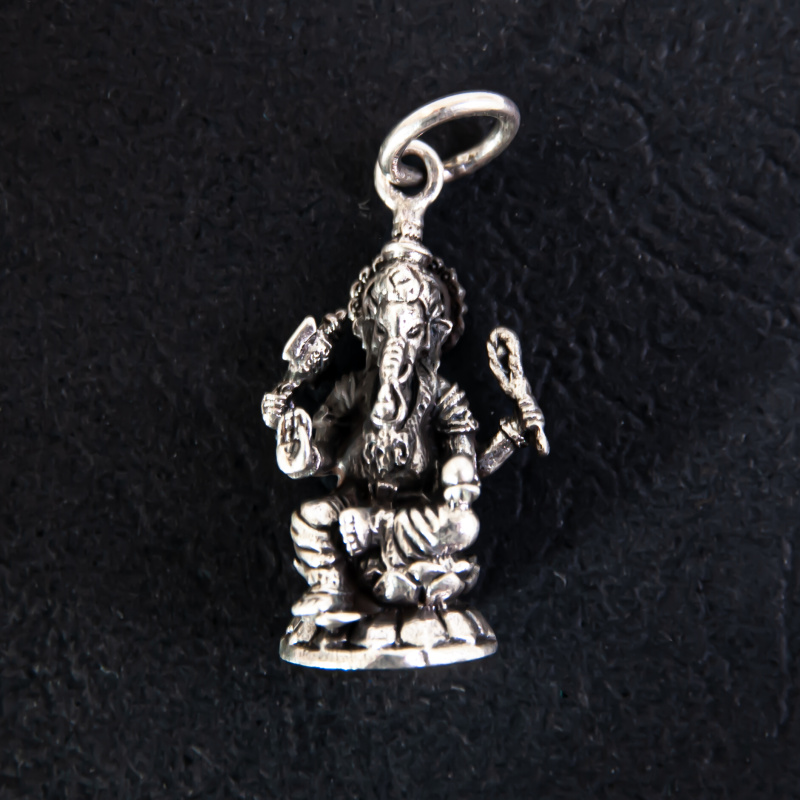 Stříbrný přívěsek ve tvaru Ganeshy.