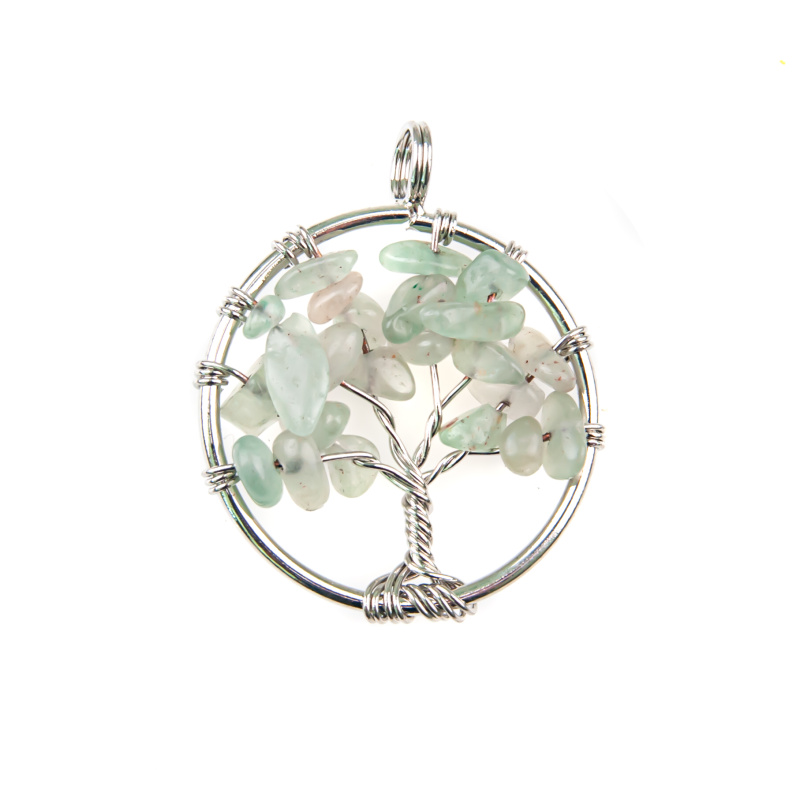 Jednoduchý drátovaný přívěsek ve tvaru stromu života z avanturínu.