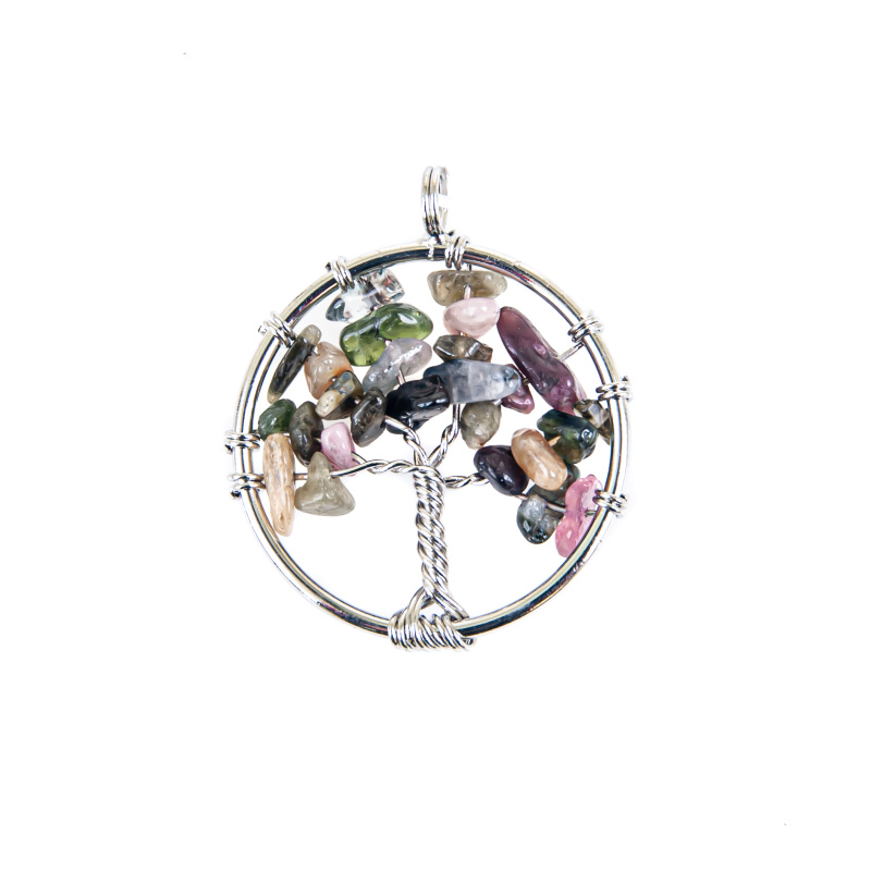 Jednoduchý drátovaný přívěsek ve tvaru stromu života z turmalínu.