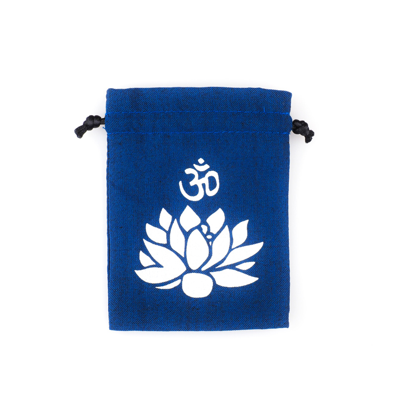 motivem symbolu Óm a lotosového květu. Pytlík se uzavírá pomocí stahovací šňůrky – jednoduše zatáhnete za oba konce a zavážete mašličkou.