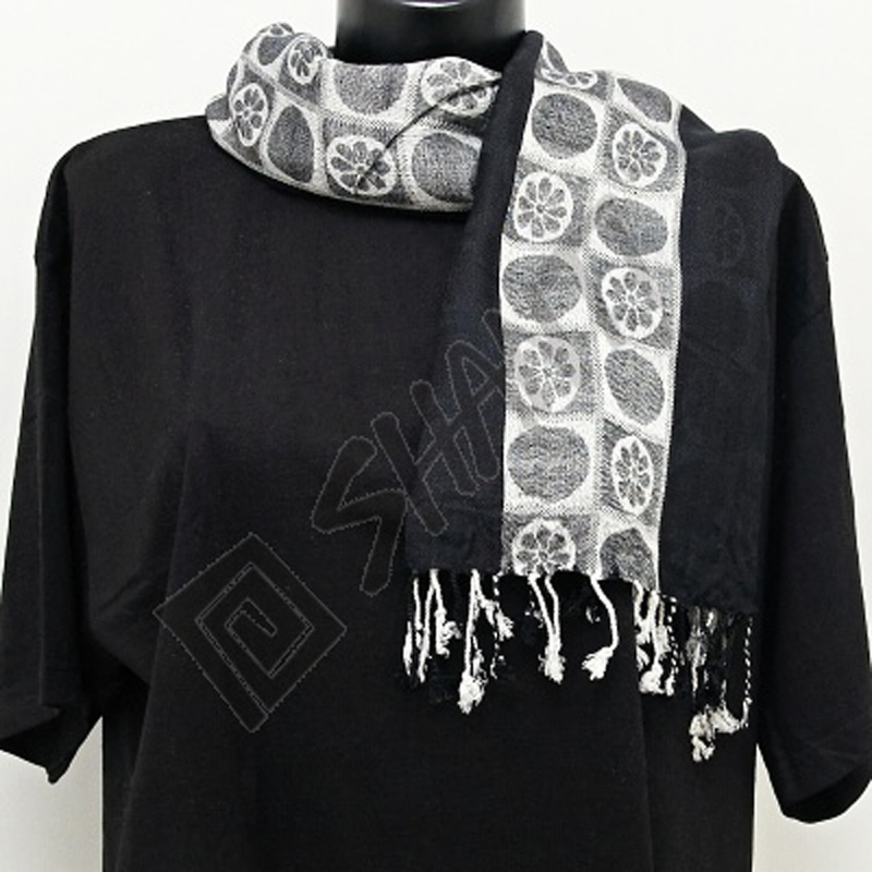 Moderní šála s různými motivy zasazenými v pruzích, černobílé provedení, Noir pruhy IV.