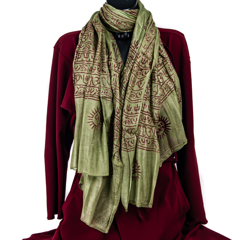 Heboučký jemný šátek z bavlněné fáčoviny, zdobený ornamenty, symboly a hinduistickými bohy, se stane skvělým přítelem na jarní a podzimní období, kdy vane studený větřík ale již není ledový mráz. Bude originálním doplňkem k ležérním i elegantnějším outfitům, který si oblíbíte a nebudete jej chtít dát z ruky.