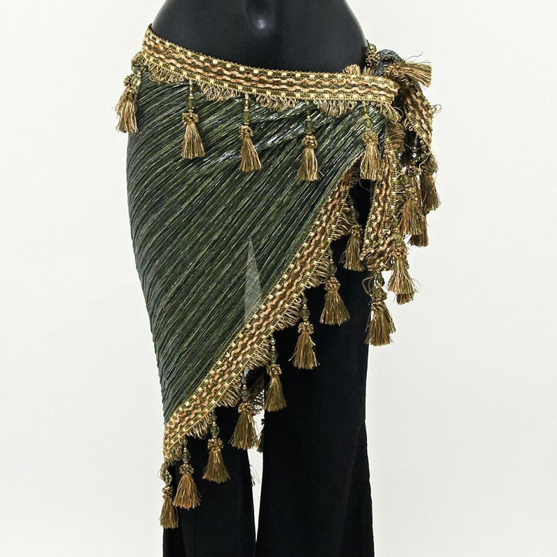 Krásně třpytivý šátek na orientální tanec Nena, ve tvaru trojúhelníku, zdobený tradičními korálky a střapci, 01