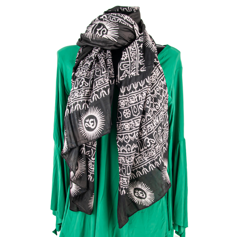 Módní doplněk s magickým motivem. Složte si bavlněný šátek s vyobrazením symbolu Óm jak jste zvyklí a nasajte jeho pozitivní energii.