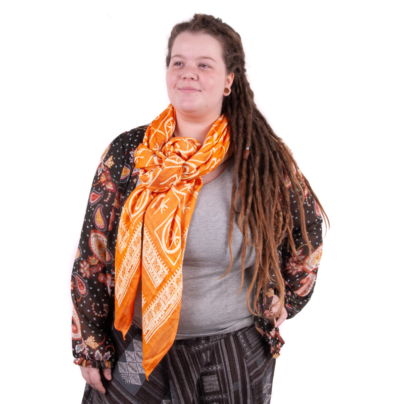 Módní doplněk s magickým motivem. Složte si bavlněný šátek s vyobrazením symbolu Óm jak jste zvyklí a nasajte jeho pozitivní energii.