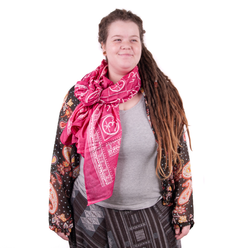 Módní doplněk s magickým motivem. Složte si bavlněný šátek s vyobrazením symbolu Óm jak jste zvyklí a nasajte jeho pozitivní energii.