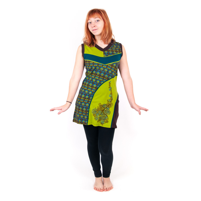 Hnědozelené nepálské šaty Joy 02 s nápadnými motivy, velikost M
