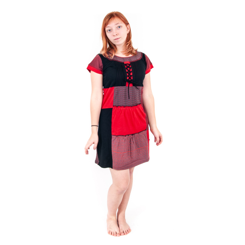 Středně dlouhé nepálské šaty moderního vzhledu Joy 22 v červené barvě, velikost XL